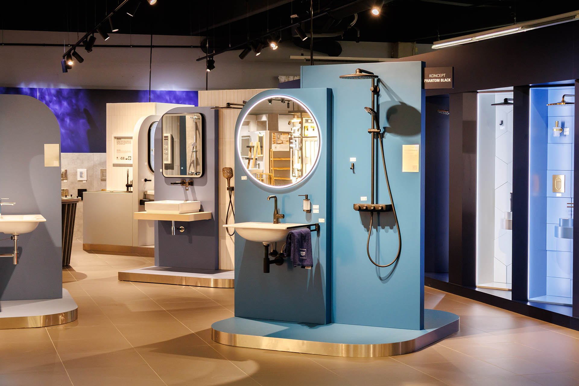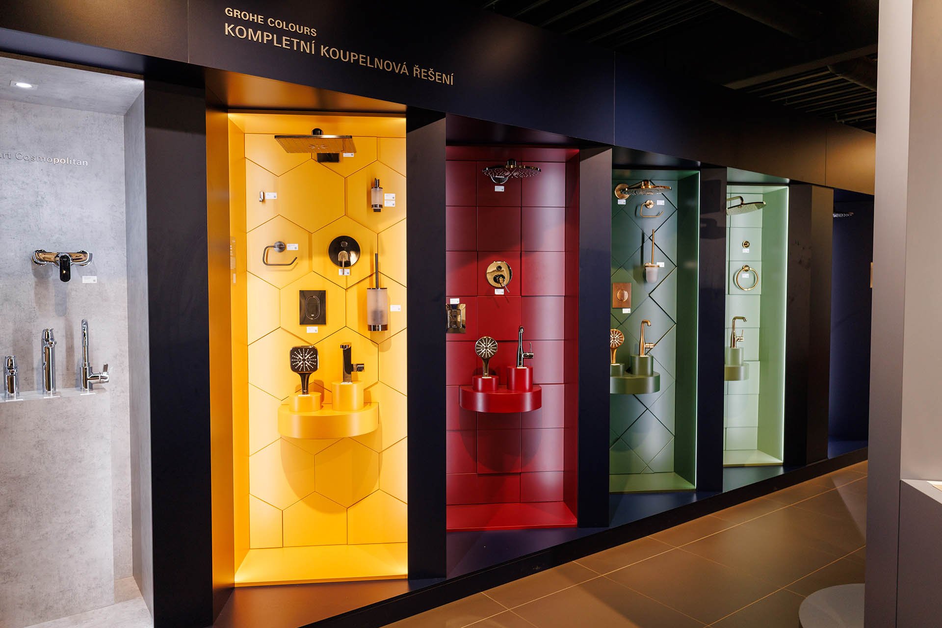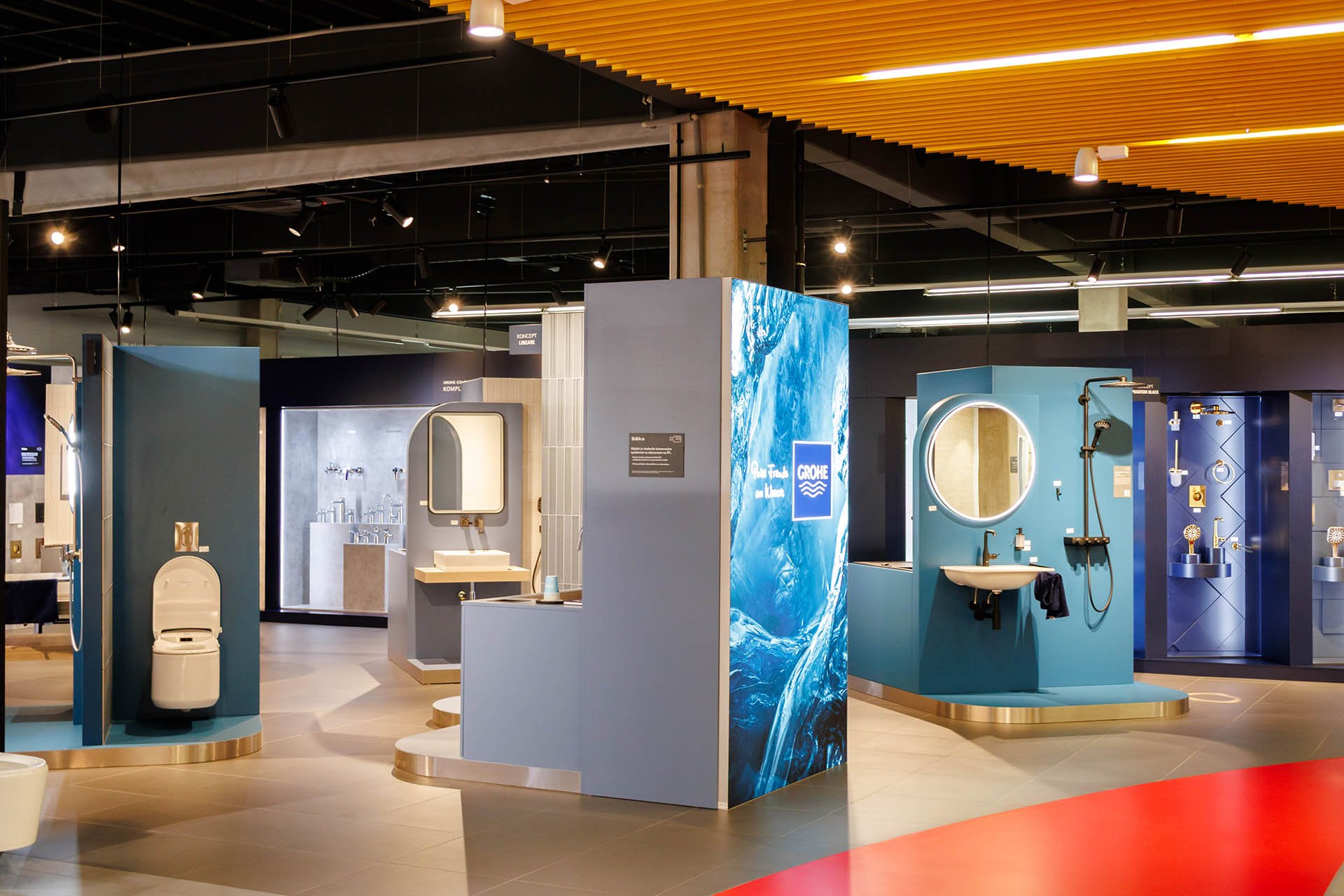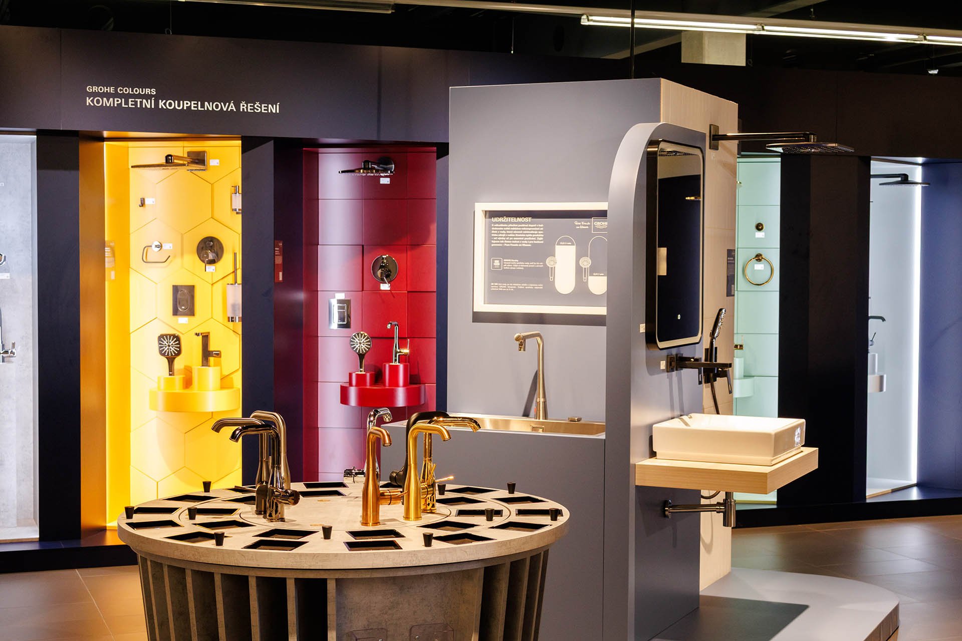 V roce 2025 jsme v pražském SIKO Zličín dokončili naši doposud nejrozsáhlejší interiérovou realizaci – exkluzivní expozici značky GROHE. Na ploše 140 m² jsme vytvořili prostor, který není jen prodejním místem, ale především zdrojem inspirace pro moderní koupelnová řešení.