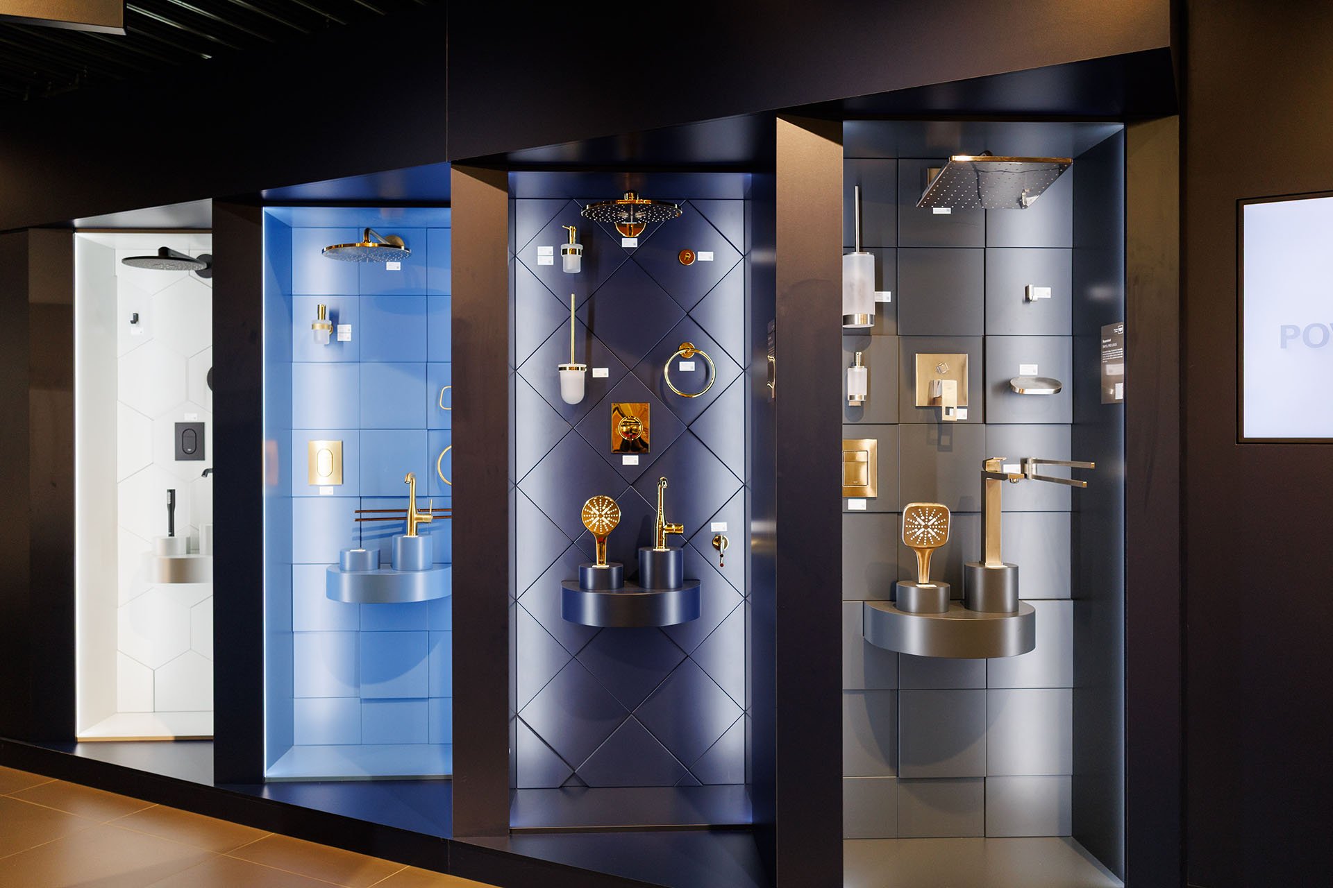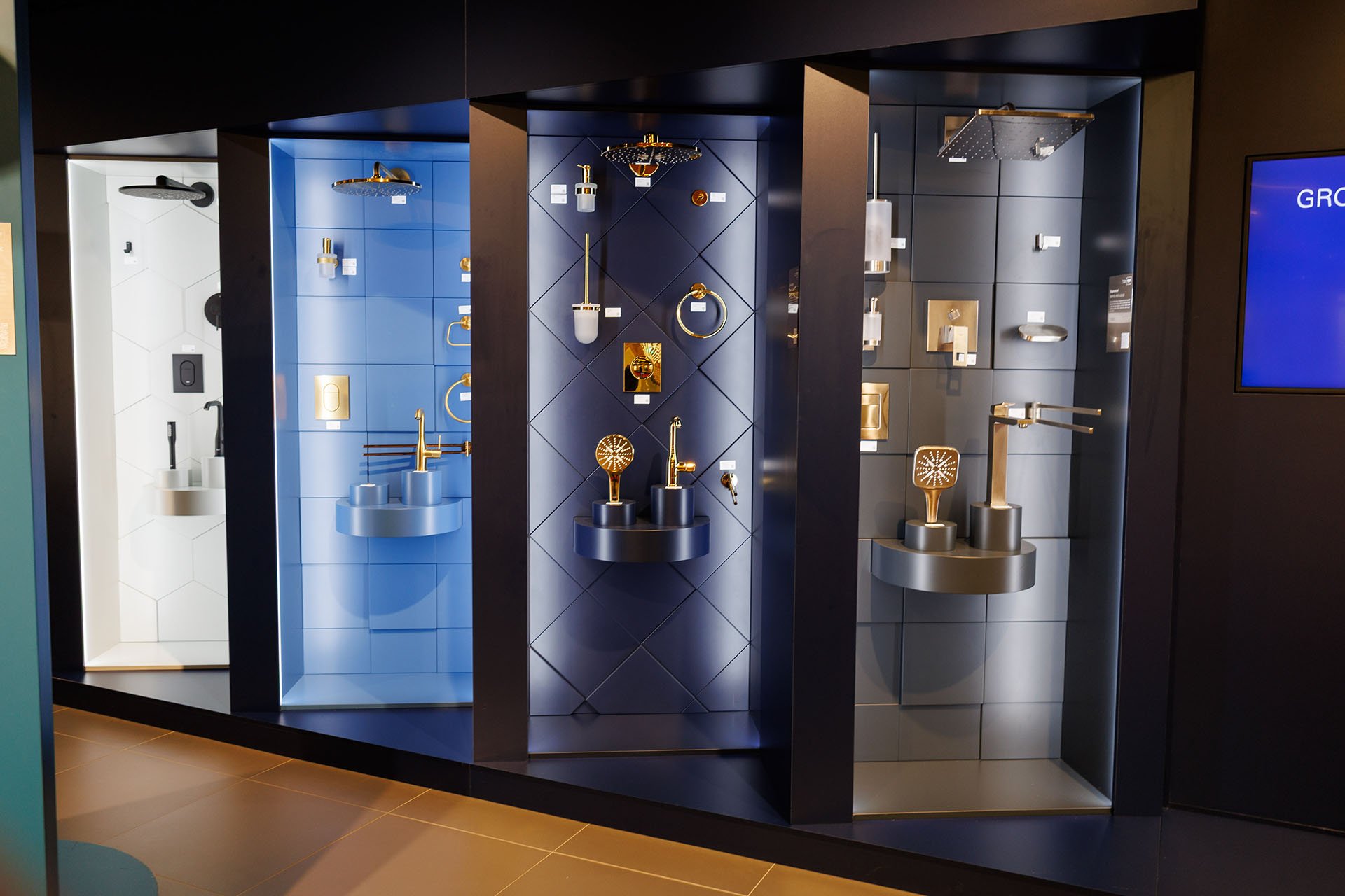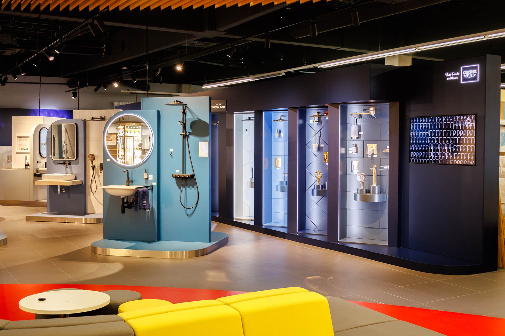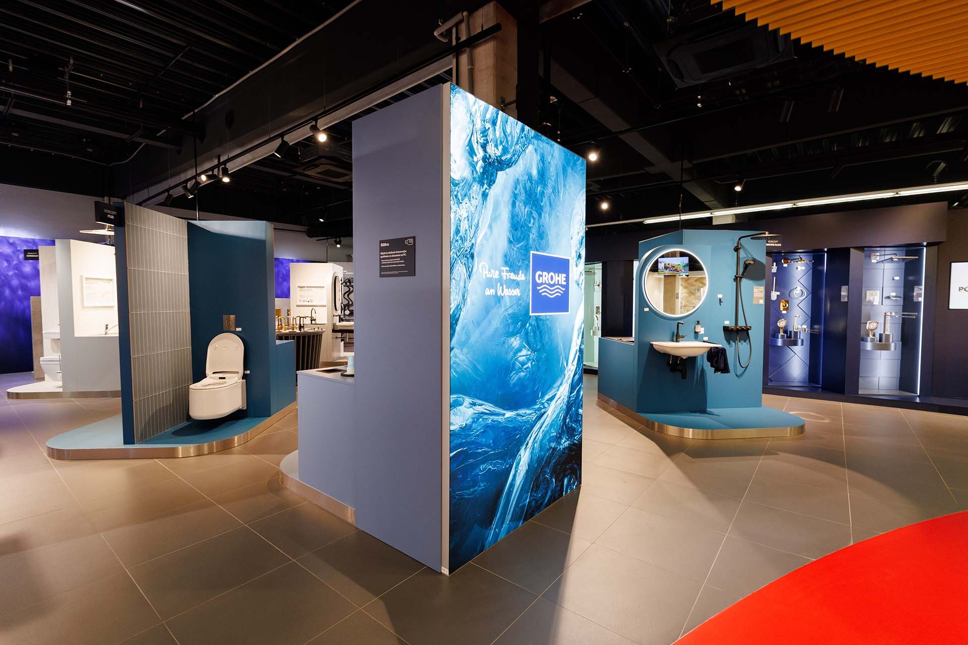 V roce 2025 jsme v pražském SIKO Zličín dokončili naši doposud nejrozsáhlejší interiérovou realizaci – exkluzivní expozici značky GROHE. Na ploše 140 m² jsme vytvořili prostor, který není jen prodejním místem, ale především zdrojem inspirace pro moderní koupelnová řešení.