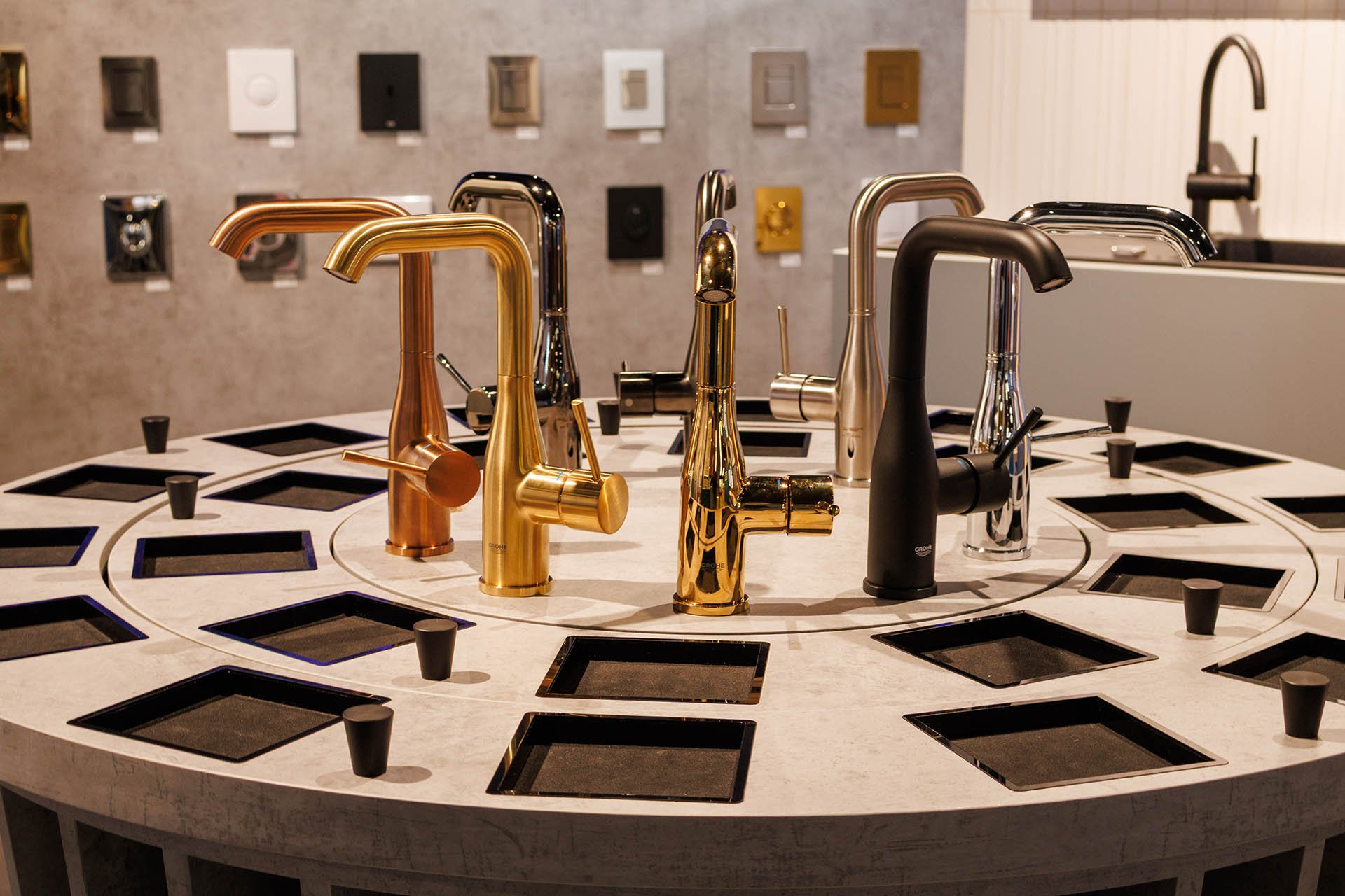 - Precizní řemeslo: Vysoká kvalita lakování a čisté linie ostrovů podtrhují technologickou vyspělost samotných produktů GROHE.